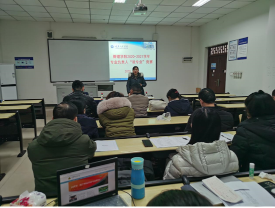 管理学院开展2020-2021学年专业负责人说专业竞赛活动进各本科专业内涵建设,提升专业教育教学质量,帮助各本科专业理清专业建设思路,交流专业建设经验、探讨专业建设的方式方法、提升专业建设理念,管理学院于12月18日在6115教室开展了2020-2021学年专业负责人说专业竞赛活动。