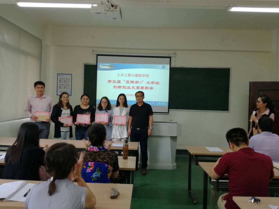 会上,杨晓玉首先宣布了土木学院在“第三届互联网+大学生创新创业大赛”取得的成绩,表扬了梁勤、梅艺老师等11位优秀工作者和优秀指导教师为学院创新创业大赛做出的努力。随后,由雷江院长为优秀指导教师们颁发获奖证书及奖金。最后,雷江院长强调,师生要紧密配合、齐心协力、积极参赛,注重授课的同时还要注重团队和个人的成长,期待全院师生能在更多的比赛中再创佳绩。