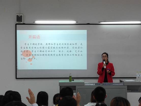 本网讯(文/胡鸿,图/庹向辉)为加强学生干部队伍的凝聚力、战斗力,提高学生干部的整体素质。我院于2018年10月10日16:00在第六教学楼301教室开展了第二期干部培训会第二课“学生干部的基本素养和职责”,主讲人为土木学院党总支书记杨晓玉。