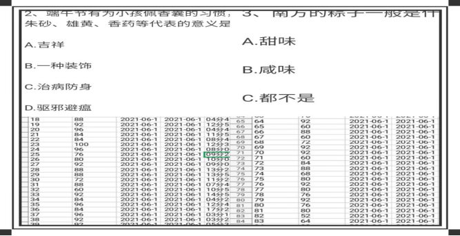 为了加深对端午这一传统文化的了解,我院年志愿者协会组织策划了线上答题。首先,工作人员线上发布答题二维码,参赛者扫描二维码进行答题,通过随机的30道题,加强对中华传统节日文化的了解,鞭策广大青年好好学习努力实现伟大复兴的中国梦,同时也纪念了爱国英雄屈原,培养了学生的爱国主义意识,从而达到弘扬中华民族传统优秀文化,树立文化自信心的目的。最后,所有参赛者答题结束,工作人员关闭答题通道,统计数据,从答题情况来看,我校学生对端午节有着非常深刻的了解。