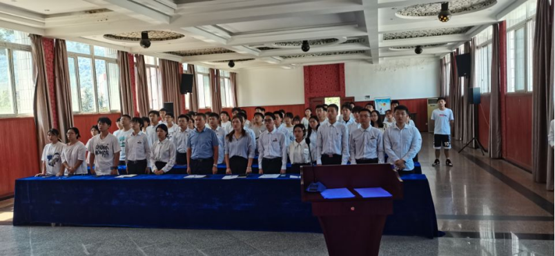 激昂的共青团团歌拉开了大会的序幕,学院团委书记刘琳靖老师宣读了录用名单。19级的杨蕾同学谈了自己在学生会工作以来的收获和体会,20级吴思骏同学代表新成员表了决心。唐和平书记要求新成员要明确自己加入学生会的初衷和最终自己要达成的目标,并对团学工作提出三点要求:一是要求全体团学干部积极起到领导作用,以身作则;二是要求团委学生会树立全心全意为同学们服务的责任心;三是要求团委干部合理用权,摆正好自己的位置,要用手中的“权”去服务同学、帮助同学。