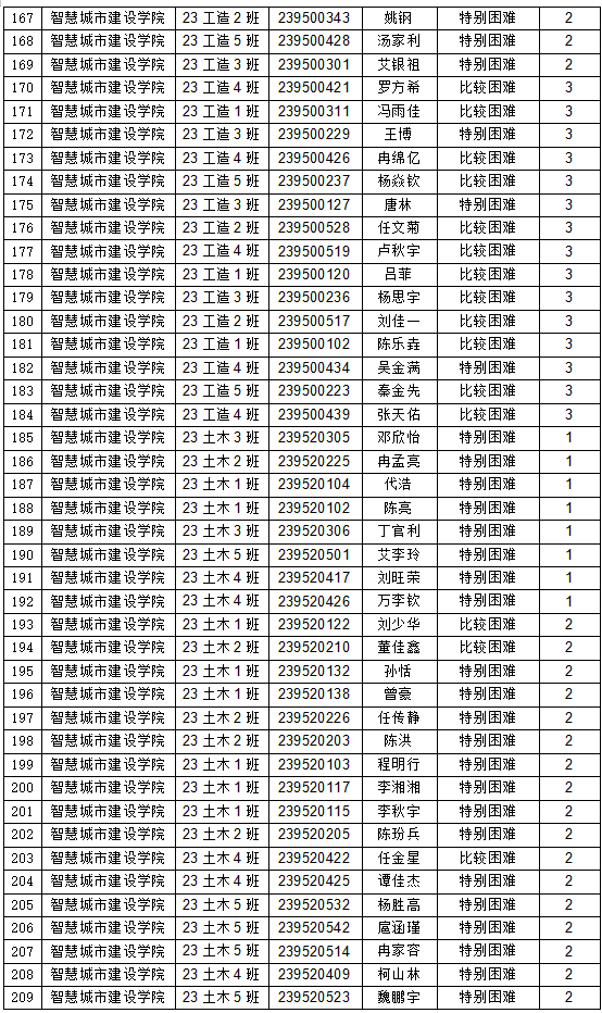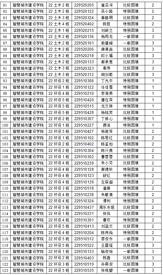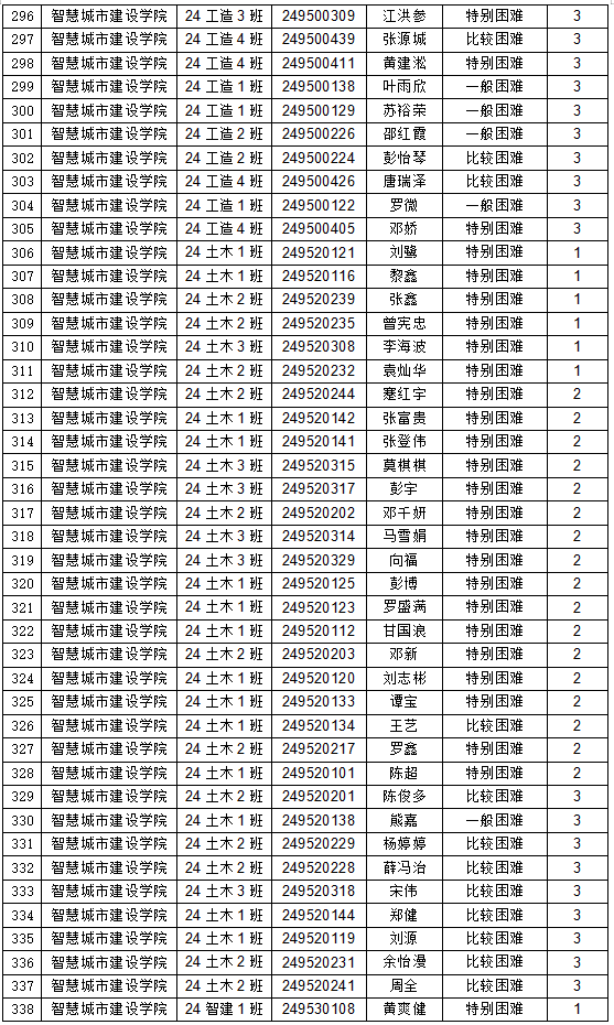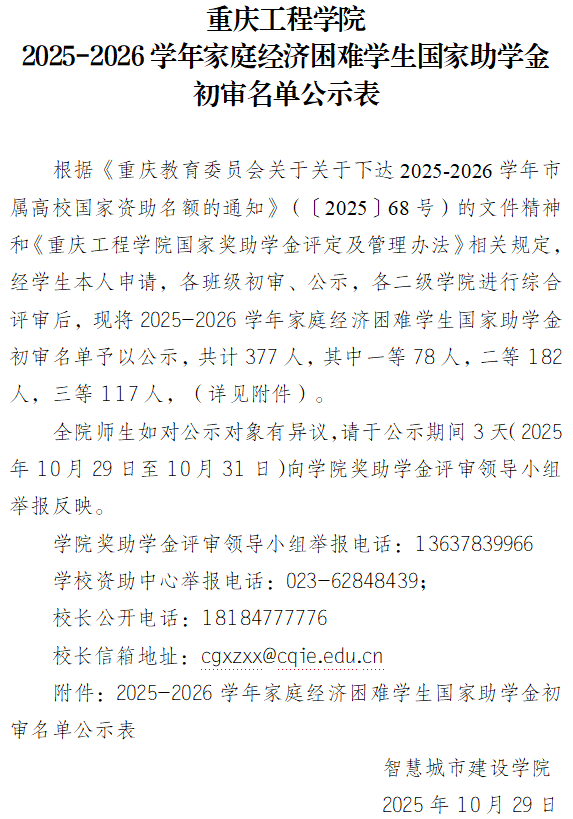 重庆工程学院2025-2026学年家庭经济困难学生国家助学金初审名单公示表