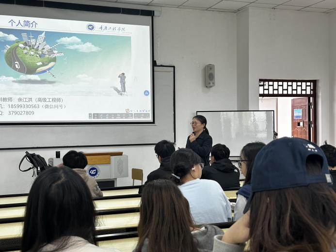 本网讯(文/图 聂冰冰) 11月5日下午,智慧城市建设学院在南泉校区第六教学楼6201成功举办了以“新基建浪潮下,土木人的机遇与挑战”为主题的就业指导讲座。本次讲座由学院教师余江洪主讲,吸引了智慧城市建设学院23级、24级多名同学积极参与。