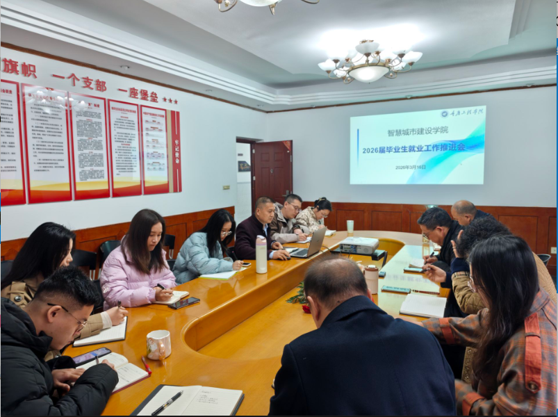 本网讯(文/图 元云丽) 为深入贯彻学校关于2026届毕业生就业工作的决策部署,3月16日上午,智慧城市建设学院组织召开2026届毕业生就业工作推进会。会议由学院党总支书记唐和平主持,学院全体党政班子成员参加。