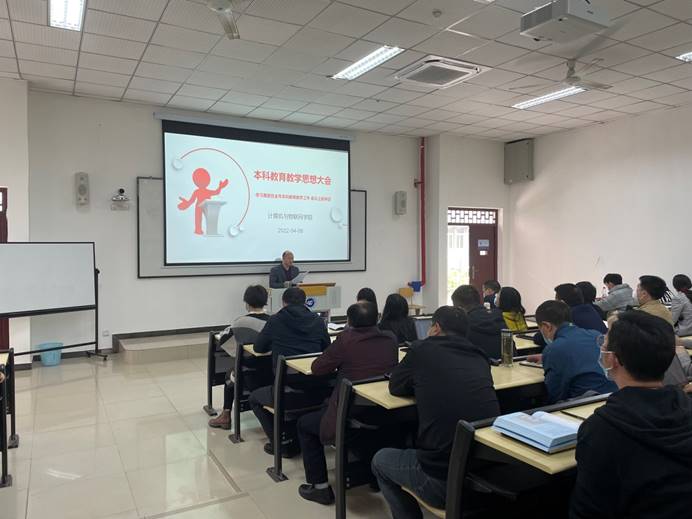 本网讯(文/图 潘晓宇)为贯彻落实全市本科教育工作大会会议精神,2022年4月6日下午,计算机与物联网学院组织全院教职工学习领会重庆市本科教育工作大会会议精神。本次会议由院长李发陵主持,全院教职工参会。