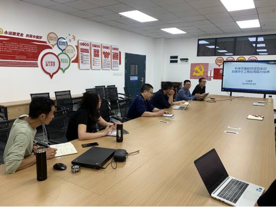 本网讯(文/图 刘逸琛 ) 9月2日上午,学院于第七教学楼7806室开展综合项目实训过程管理体系培训会,本次培训活动由软件学院副院长冷亚洪主讲,计算机与物联网学院李发陵院长、各系主任及19级计科2-7班实训教师参会。