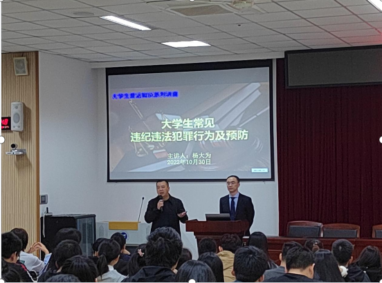 本次讲座由重庆森众律师事务所杨大为律师主讲,21级物联网工程专业、网络工程专业和信息安全专业全体同学积极参与。在讲座中,杨大为律师就现在常见校园违法行为例对同学们进行了相关法律知识的普及和讲解。并根据现场同学们的提问进一步扩展了校园大学生不受重视的常见违法乱纪行为。