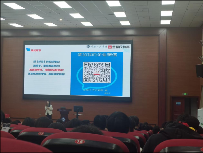 互动环节中,主讲人用抽奖的方式让同学们扫码加助理老师,得抽奖链接抽奖,为同学们提供免费考情、真题等资料,现场交流氛围热烈。