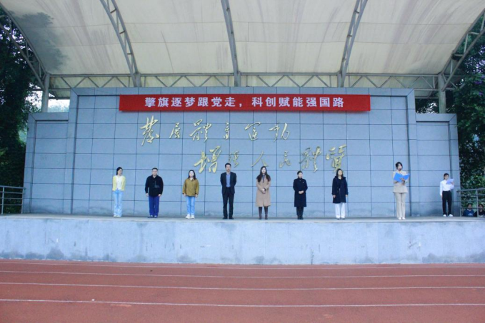 伴随着国旗冉冉升起,思政辅导员王成林老师现场开展微宣讲,深刻传递科创报国的精神内涵;学生代表王芮同学结合自身从拆解代码到投身实践的经历发言,展现青年学子在AI时代的思维跃迁与行动力量。党总支书记黄涛与全体参会师生共同回望党引领科技创新的辉煌征程,明确新时代青年以科创赋能强国建设的使命担当。