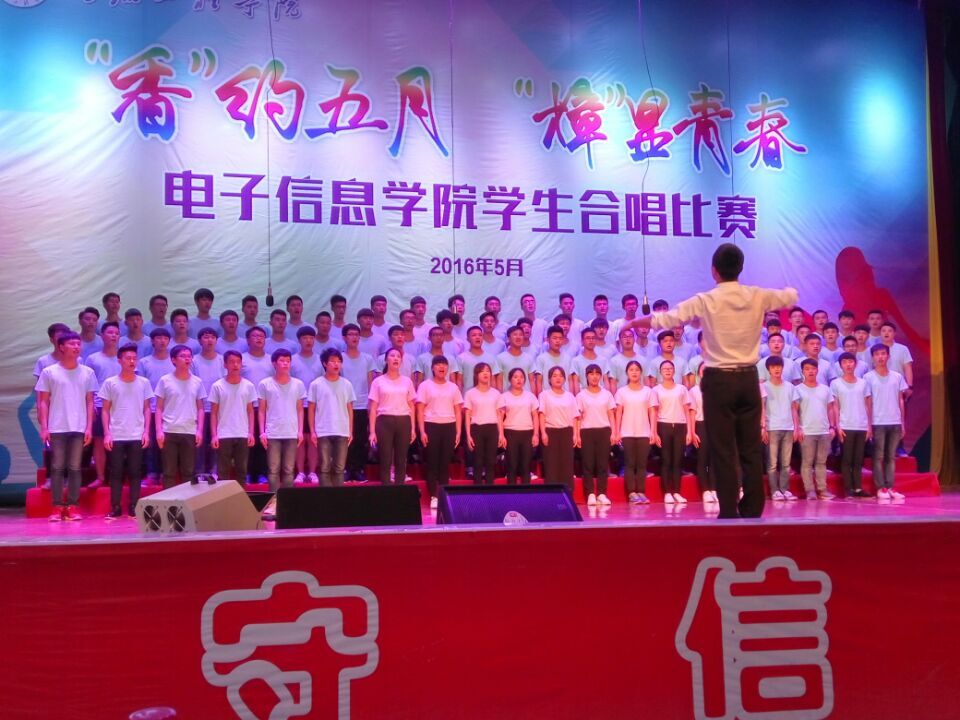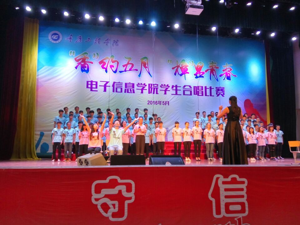 本网讯(电子信息学院 刘顺江)为丰富校园文化生活,营造蓬勃向上的校园文化氛围,电子信息学院于5月11日在学术报告厅举行了“‘香’约五月·‘樟’显青春”为主题的学生合唱比赛。本次比赛邀请了学校教职工歌手大赛两次冠军获得者,校歌作曲者图书馆黄静老师,中国音乐协会会员、图书馆戴红兵老师、学工部李婷老师、管理学院徐培芳老师及两名校园歌手胡力丹、严怡琳担任评委。