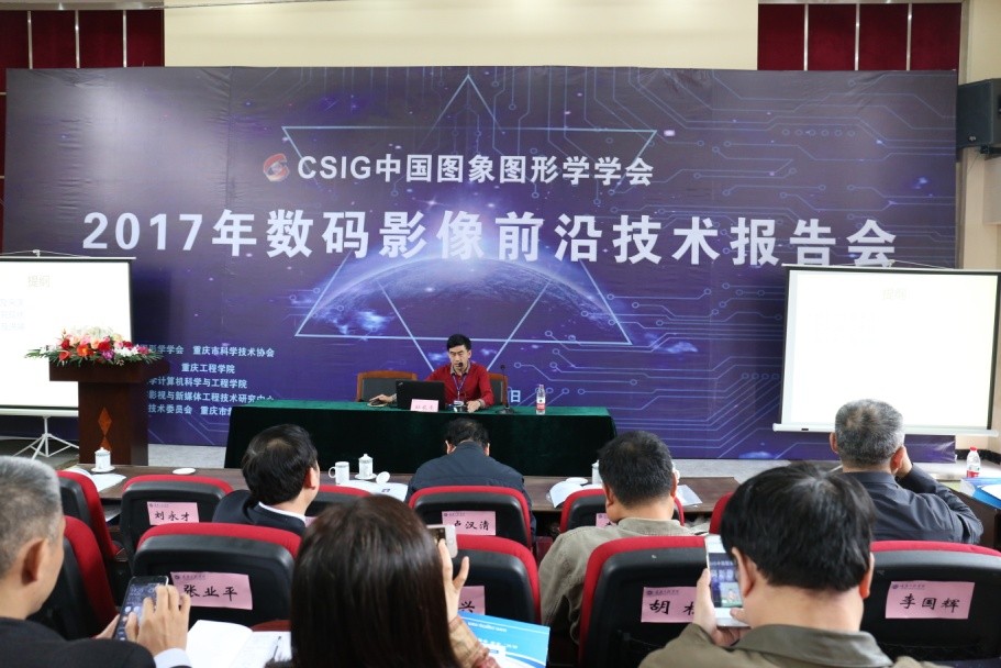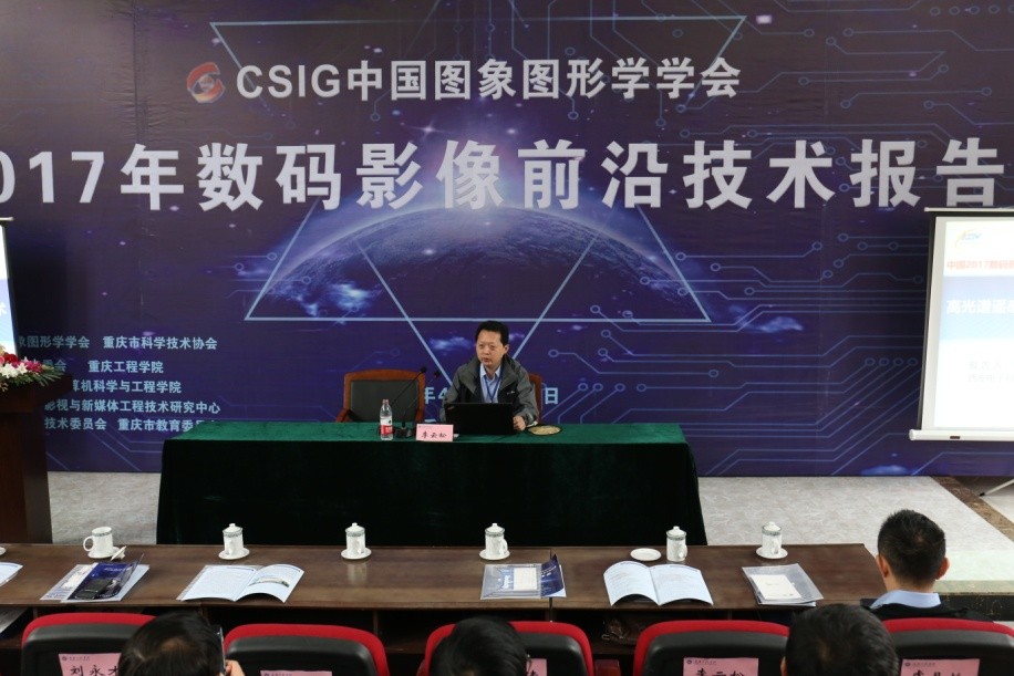 本网讯(文/科技处 图/大学生记者团)2017年4月28日上午9:00,2017年数码影像前沿技术报告会在我校行政楼报告厅隆重举行,本次会议由中国图象图形学学会、重庆市科学技术协会主办,重庆市科学技术委员会、重庆市教育委员会指导,中国图象图形学学会数码影像专委会、重庆工程学院、重庆理工大学计算机科学与工程学院、重庆市数字影视与新媒体工程技术研究中心承办。会议特邀中国工程院刘永才院士、西安电子科技大学李云松教授、上海科技大学虞晶怡教授、山东科技大学孙农亮教授来校作专题讲座。中国图象图形学学会数码影像专业委员会部分委员、重庆市部分高校代表及重庆工程学院师生200余人也参加了本次会议。会议由程昌华副校长主持。