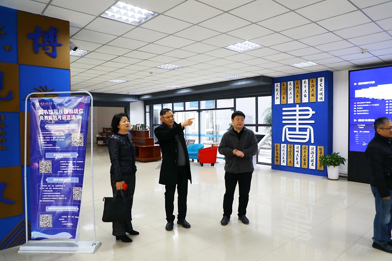 蒋云芳一行先行参观了学校网络信息中心、信息大楼、图书馆等场所,了解了学校教学大数据中心、智慧教室、智能科学实验室、图书馆文化等建设情况。在参观过程中,蒋云芳处长对学校加大教学投入,积极改善办学条件予以肯定,尤其是对学校投入近4000万元建设智慧校园予以赞赏。她指出,要加强信息技术与教育教学深度融合,积极推进新信息技术背景下的教师课堂教学改革,完善教学评价和教学管理机制。