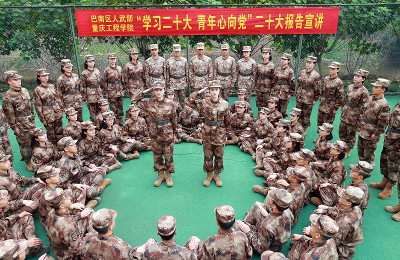 本网讯(文/图 党委武装部 朱文韬)近日,学校国旗护卫队群体通过电视、广播等形式,聆听学习党的二十大报告后,深受鼓舞,表示将以更加饱满的精神状态、担当作为的实干作风,切实做好各项工作任务,做出自己的贡献。随后国旗护卫队和退役复学学生骨干力量开展了以“学习二十大,青年心向党”为主题的宣讲活动,遴选优秀的退役复学学生与国旗护卫队队员,深入基层宣讲党的二十大精神。