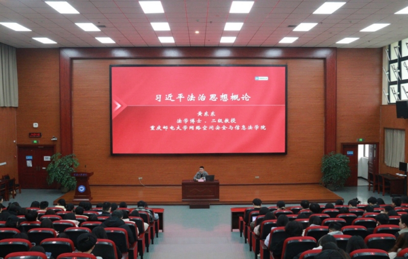 本网讯(文/党政办 黄璐 图/大学生记者团)为增强全校师生法治意识,12月19日,学校法制办公室特邀重庆市“百名法学家百场报告会”法治宣讲活动宣讲团成员、重庆邮电大学网络空间安全与信息法学院副院长黄东东来校,开展“百名法学家百场报告会”法治宣讲活动。全校300余名师生参加,活动由法制办公室黄璐主持。