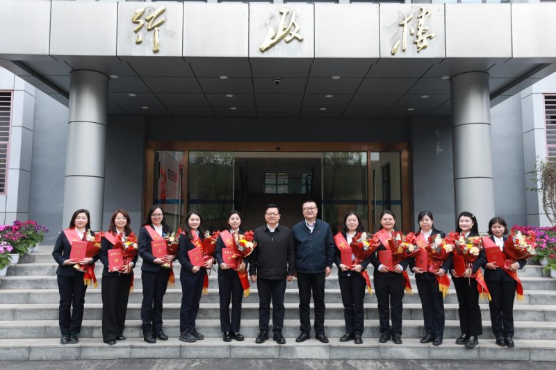 会后,校领导与全体获奖女教职工合影留念。