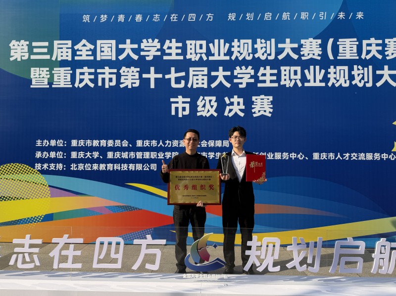 本网讯(文/图 就业指导中心 叶秋清)近日,第三届全国大学生职业规划大赛(重庆赛区)暨重庆市第十七届大学生职业规划大赛决赛圆满落幕。我校师生表现优异,在此项赛事中实现历史性突破,斩获1金1银8铜的优异成绩,学校同时荣获“优秀组织奖”。