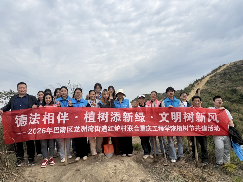 本网讯(文/图 大数据与人工智能学院王衍程)春回大地,万物竞发。在第 46个植树节来临之际,为深入践行“绿水青山就是金山银山”的理念,落实生态育人要求,3月12日,大数据与人工智能学院携手重庆市巴南区红炉村村民委员会,走进铜锣山庙来垭火烧山修复区域,开展“德法相伴・植树添新绿・文明树新风”主题植树活动。学院分团委两位指导老师带队,组织数十名学生志愿者奔赴现场,以实际行动践行生态责任,为区域生态复苏注入蓬勃青春动能。
