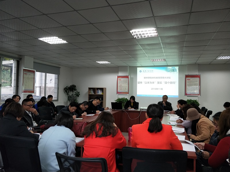 本网讯(软件学院谭宇宏、大学生记者团)为贯彻落实全国教育大会、教育部本科教育工作会议精神,根据学校相关工作部署,11月7日下午,软件学院组织全体教师,在3501会议室开展了新时代本科教育思想大讨论活动专题学习交流会。