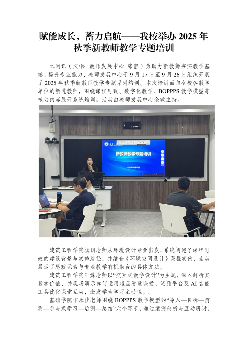 赋能成长,蓄力启航——我校举办2025年秋季新教师教学专题培训