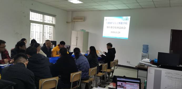 本网讯(图/文 刘雪梅)为了切实抓好教学常规管理,加强对任课教师教学环节的监督与检查,认真总结成绩,及时发现和改进教学中的不足,于2020年11月25日15:00大数据与人工智能学院在老办公楼102组织召开2020-2021学年第1学期期中教学检查总结会,院长曹耀钦主持,全院专任教师参与。