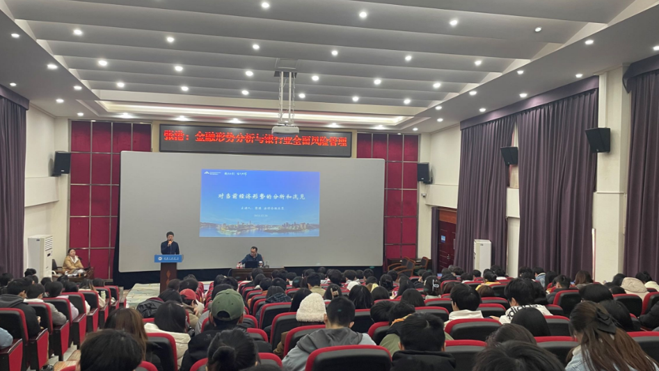 本网讯(文/图 大数据与人工智能学院 欧阳述娟/孔旖)为贯彻落实学院人才培养目标,深化校企合作和产教融合,让师生更深入地了解实际工作需求,为培养具备实战能力的人才提供有力支持,12月20日下午,大数据与人工智能学院邀请到某互联网银行法律合规总监张港在办公楼报告厅为学院师生们开展了一场主题为“金融形势分析与银行业全面风险管理”的培训。大数据与人工智能学院全体任课教师以及对课程感兴趣的学生,共200余人参加。