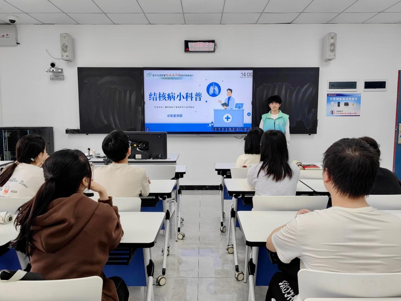 本网讯(图/文 大数据与人工智能学院 刘佳怡 辜虹蕊)为增强学生健康意识,提高大家对结核病的认识和预防意识,助力实现全民健康目标,2024年4月17日,大数据与人工智能学院云智志愿服务队云智宣讲团在7206室开展结核病小科普宣讲活动。