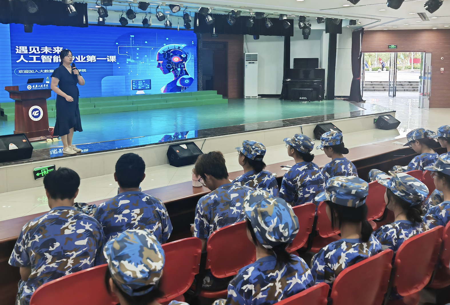人工智能系主任陈怡然以《遇见未来:人工智能专业第一课》为题,分享了人工智能的迅猛发展脉络和前沿应用案例,并结合优秀学长的学习与工作经历,为新生展现了广阔的发展空间。她鼓励同学们直面AI浪潮,锤炼实践能力和创新精神,努力成为人工智能时代的弄潮儿。
