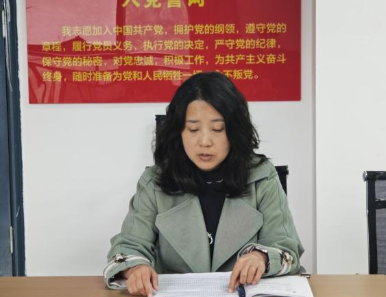 政治理论学习环节结束后,胡漫同志宣布了新入党同志的名单。在组织委员杨斯琪的带领下,新入党同志面对党旗庄严宣誓,志愿加入中国共产党,为共产主义事业奋斗终身。宣誓完毕后,刘雪梅书记勉励新党员同志牢记入党誓词,践行初心使命,积极投身实践,努力在各自岗位上展现党员的先锋模范作用。