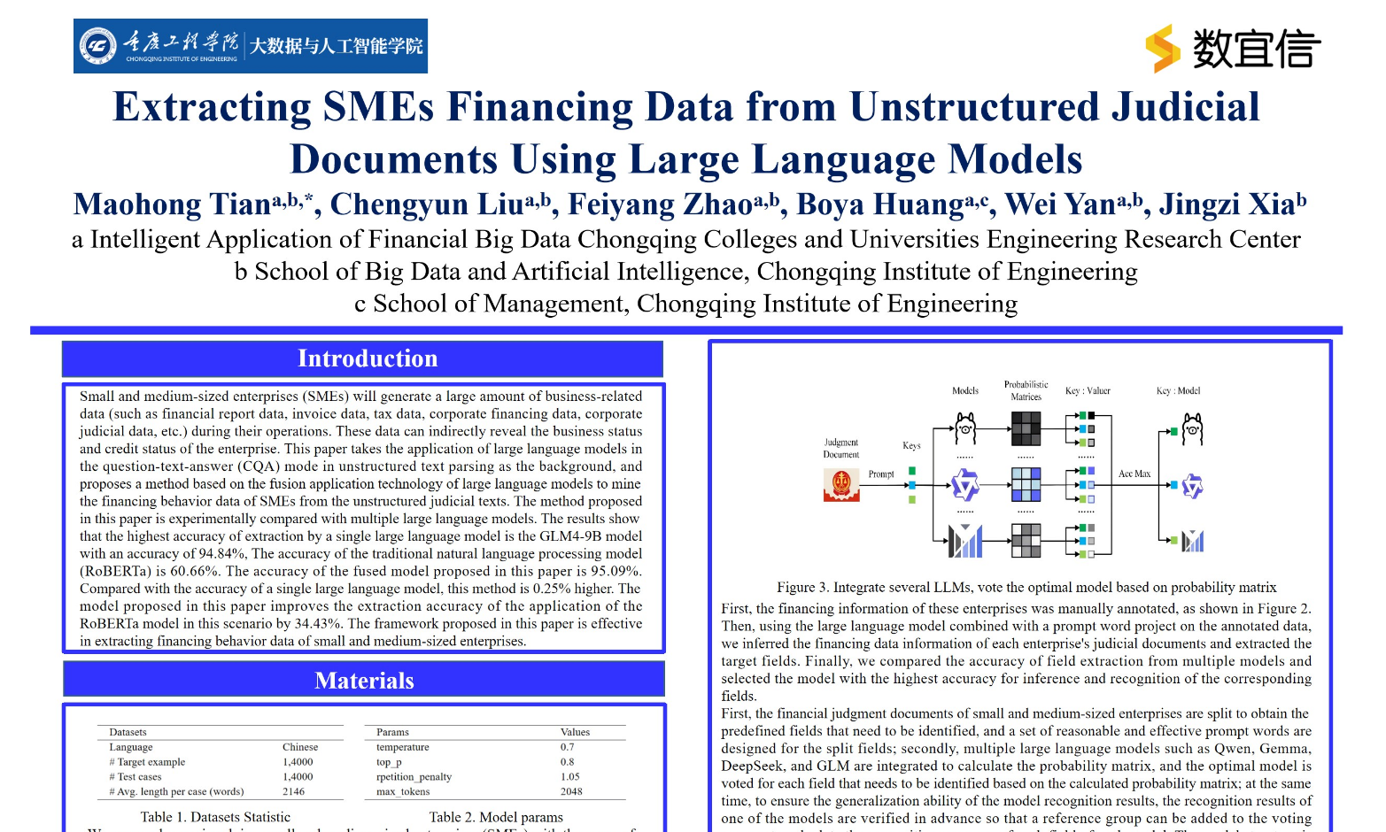 我校大数据与人工智能学院人工智能研究所黄博雅老师受邀参会,同时于10月25日就其团队的研究成果作了题为“基于大语言模型的中小企业融资数据司法文书抽取研究”的学术展报。