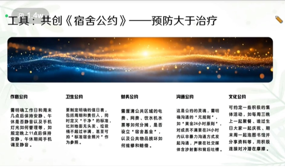 此次讲座为同学们搭建了深入了解和处理宿舍关系的平台,让大家受益匪浅,对未来营造和谐的宿舍生活充满信心。