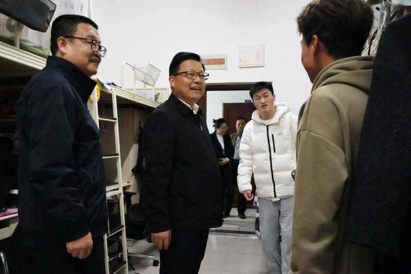 在学生宿舍,陈长虹与同学们亲切交谈,详细询问学生实习就业进展、学业规划,贴心关心大家的课余生活与实际困难。他鼓励同学们新学期树立新目标,多读书、多交流、多实践,在实践中锤炼本领、提升综合素养;同时叮嘱社区生活老师认真履职,抓实期初宿舍安全管理,强化日常巡查与人文关怀,用心用情做好服务,打造整洁、安全、温馨的社区育人氛围。