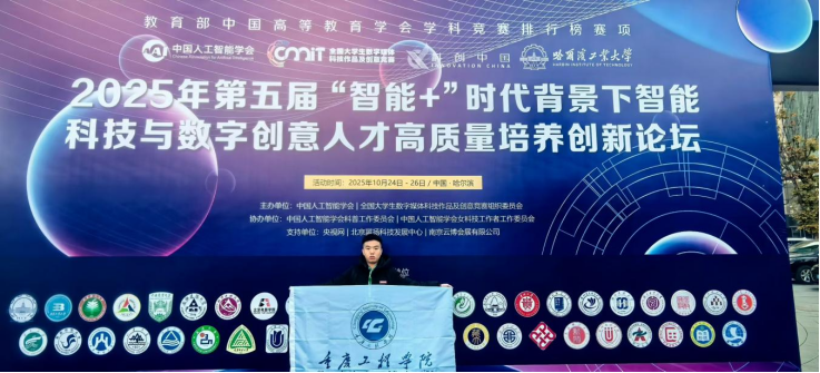 本网讯(文/图 软件学院 赵商)10月24—26日,由中国人工智能学会、全国大学生数字媒体科技作品及创意竞赛组委会主办的2025第13届全国大学生数字媒体科技作品及创意竞赛全国总决赛在哈尔滨工业大学举行。本次大赛共吸引来自清华大学、浙江大学、上海交通大学、华中科技大学、四川大学等430余所高校的4200余件作品参赛,经过赛区层层选拔,最终入围全国总决赛,竞争异常激烈。