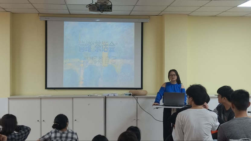 活动以新颖有趣的“情绪盲盒”环节拉开序幕。随着一个装满“喜怒哀乐惊盼”卡片的盒子在同学们手中传递,现场的气氛由最初的些许拘谨,逐渐变得开放而真诚。抽到“喜”的同学分享了攻克编程难题后的成就感;抽到“哀”的同学则倾诉了对家人的思念。同学们在倾听与被倾听中感受到了集体的温暖。