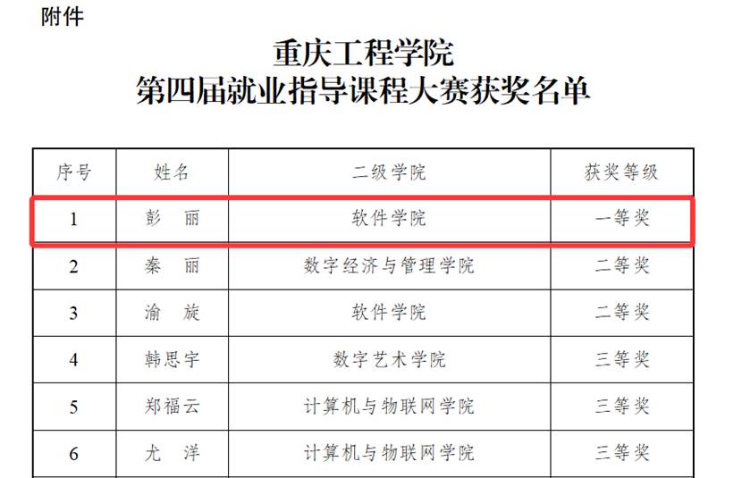 近日,重庆工程学院第四届就业指导课程大赛决赛圆满落下帷幕。经过激烈角逐,星火燎原辅导员工作室彭丽老师凭借扎实的专业功底、生动的教学展示和创新的教学设计,在全校参赛教师中脱颖而出,荣获大赛一等奖,展现了工作室成员较强的教学水平与就业指导能力。