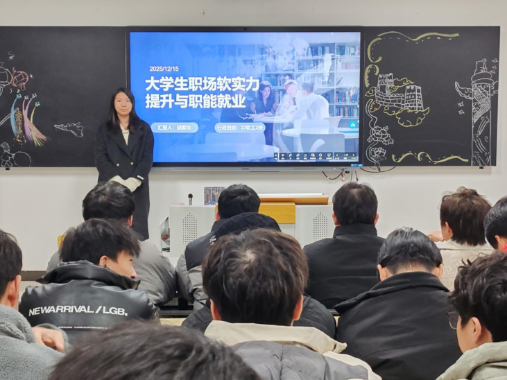 1215日,软件学院23软工2班在第六教学楼121教室开展“大学生职场软实力提升与职能就业”主题分享会。本次活动由班级就业委员邱紫依同学主持。