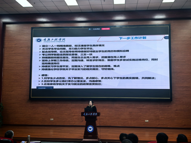 部署结束后,4名代表依次发言分享工作经验——辅导员代表、班导师代表及实习就业指导老师代表,结合自身所带学生的实际情况,深入阐述了当前就业工作开展过程中遇到的问题与困难,详细汇报了后续工作思路与具体推进计划,为全院就业工作开展提供了有益参考。