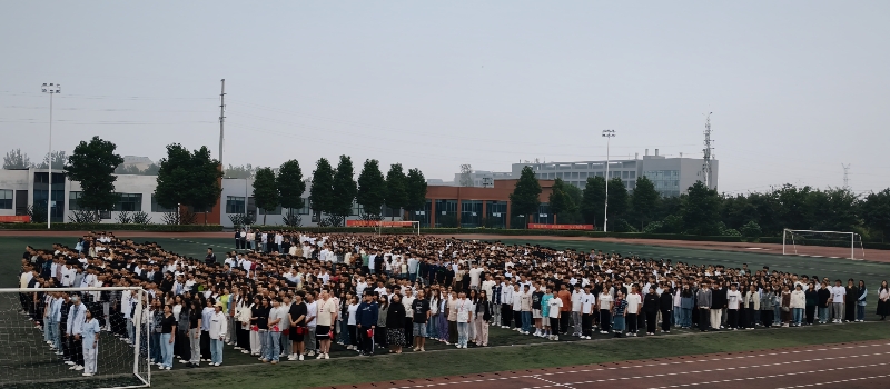 仪式现场,师生们佩戴好校徽,在足球场上整齐列队,庄严肃立。随着《义勇军进行曲》那激昂而熟悉的旋律奏响,国旗护卫队成员昂首阔步,迈着整齐划一的步伐入场,升旗仪式正式开始。在庄严的国歌声中,五星红旗缓缓升起,迎风飘扬。全体在场师生向国旗行注目礼,目光紧紧追随着国旗上升的轨迹,满怀对祖国的热爱与祝福;歌声在足球场上方铿锵有力地回荡,同学们以挺拔的身姿、肃穆的脸庞,生动诠释了青年学子对祖国的赤诚敬意。
