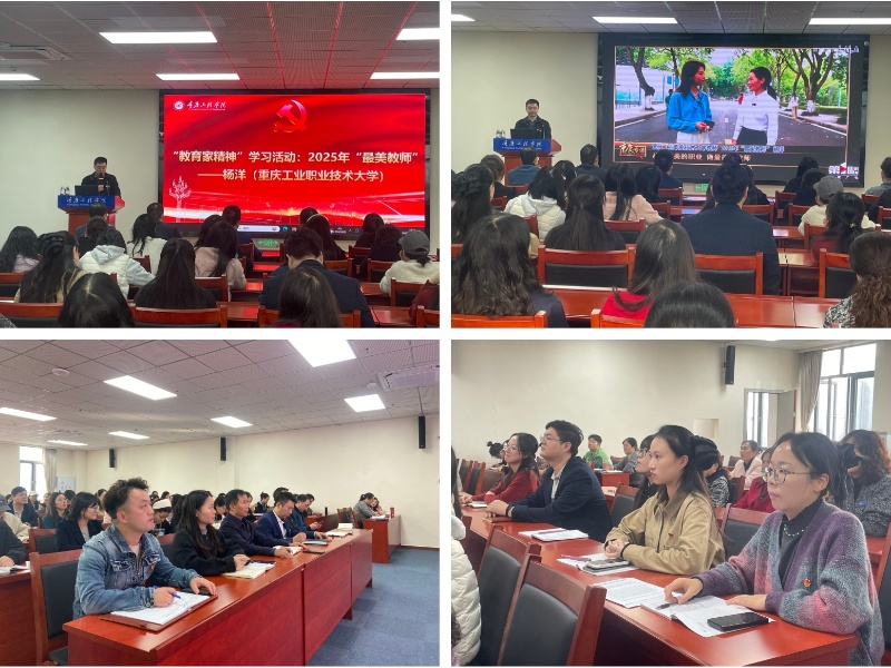 会上,全体教职工观看学习了 2025年“最美教师”、重庆工业职业技术大学杨洋老师的先进事迹。通过观看她扎根职业教育一线、创新教学方法、关爱学生成长的典型案例,教职工深受触动,进一步理解了“教育家精神”内涵,坚定了以榜样为镜、深耕教育领域的信念。