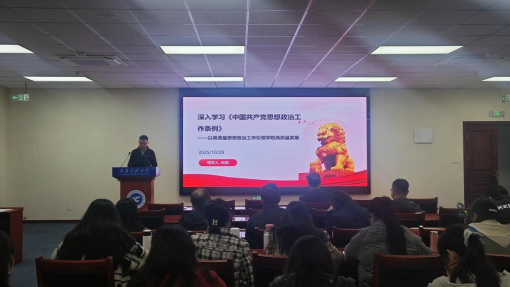 《条例》作为一部关于思想政治工作的统领性、综合性基础主干法规,系统回答了新时代思想政治工作的方向性、根本性、全局性问题。其出台标志着思想政治工作从经验总结迈向制度化、规范化新阶段,为全党全国各族人民团结奋斗提供了根本遵循。领学过程中,张楠重点解读了《条例》中关于坚持党的全面领导、明确思想政治工作根本任务以及创新工作方式方法等核心章节与关键条款。他强调,各位教师要高度重视理论学习,将学习《条例》作为深化主题教育、落实立德树人根本任务的重要抓手,以高度的政治自觉推动《条例》精神在学院落地生根。