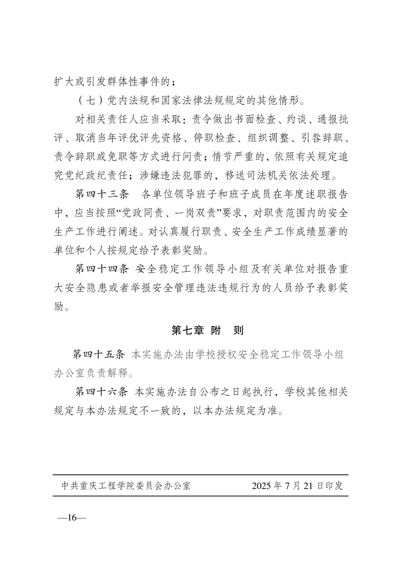 中共重庆工程学院委员会 重庆工程学院安全稳定工作“党政同责、一岗双责”制实施办法(修订)