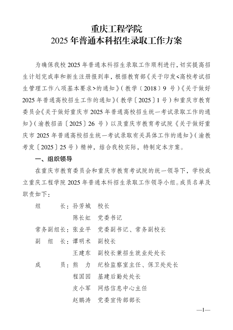 当前位置:首页 > 招生考试 > 重庆工程学院2025年普通本科招生录取工作方案