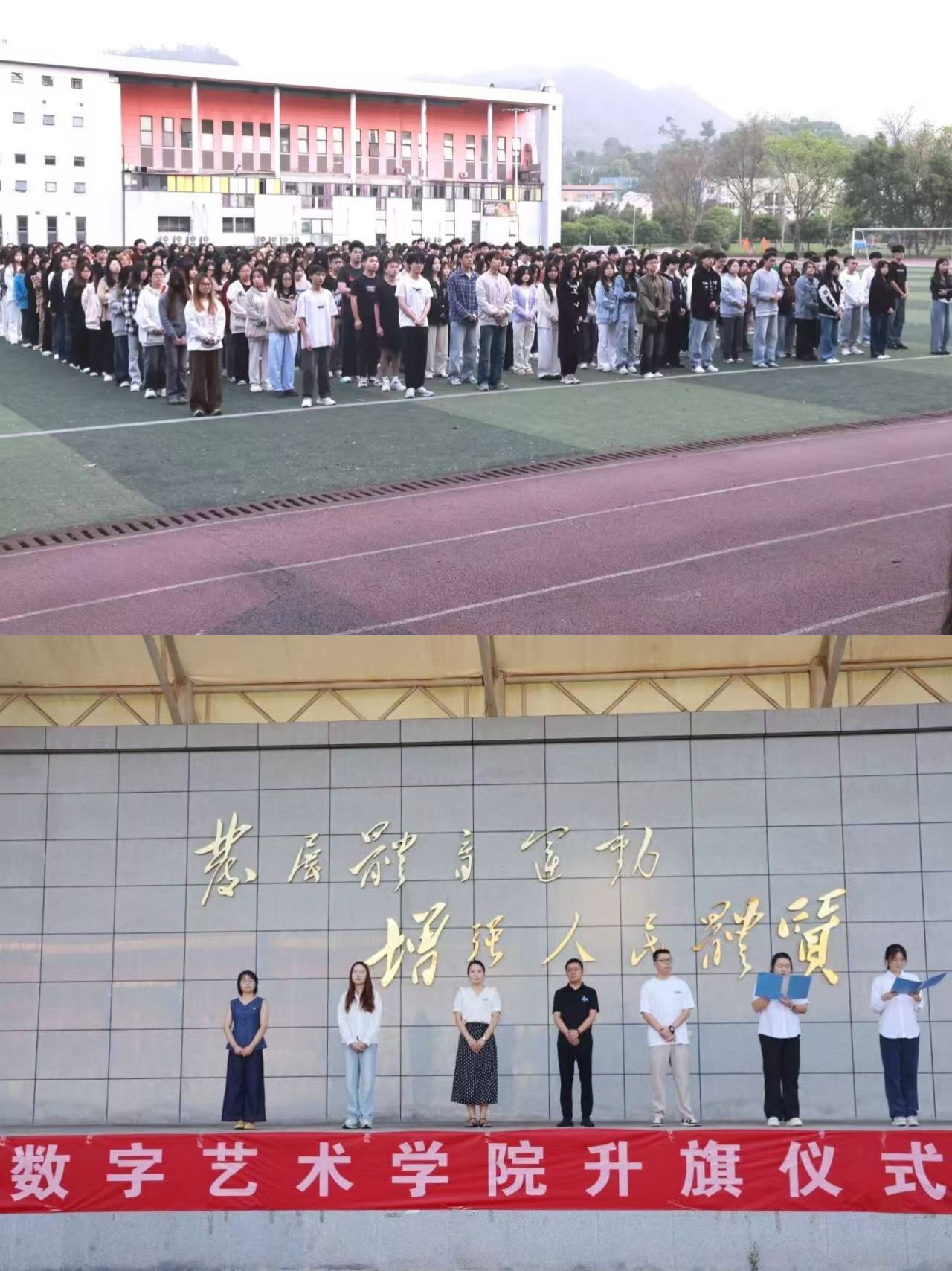 伴随着激昂的《义勇军进行曲》,五星红旗冉冉升起、迎风飘扬,全体师生肃立注目,高唱国歌,爱国之情与民族自豪感在每个人心中激荡。升旗仪式后,2023级优秀学生代表向真从感恩谈起,总结了大学校园期间的成长和收获。最后,庄涛文院长发表讲话,提醒同学们在校期间一定要学好专业知识,为步入社会打好基础。