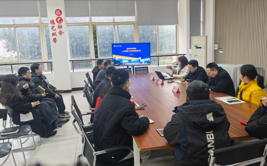 本网讯(文/教务科赵正伟 图/办公室李毅)为为深化学校应用型人才培养改革,加快推进产教融合与项目制教学,12月16日,党委副书记兼常务副校长张业平、副校长谭明术率教务处、人事处负责人赴数字艺术学院开展专题调研。会议聚焦人才培养方案修订、专业建设升级与师资队伍优化等核心议题,通过座谈交流、现场指导等方式为学院发展精准把脉。通过座谈交流与现场指导,为学院发展把脉定向。学院领导班子、教务科及各专业负责人参会,院长庄涛文主持会议。