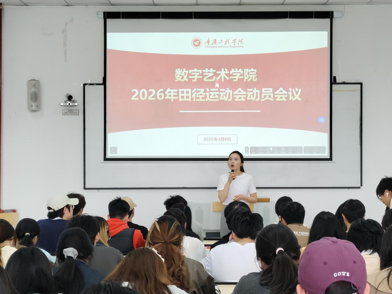 本网讯(文/图 杨道珍)为深入推进校园体育文化建设,做好校运会各项筹备工作,4月8日下午13:00,数字艺术学院2026年田径运动会动员大会在第六教学楼201 教室开展。学生科杨道珍老师、团委主席团及体育部负责人、各班体育委员,以及全体参赛运动员参会。